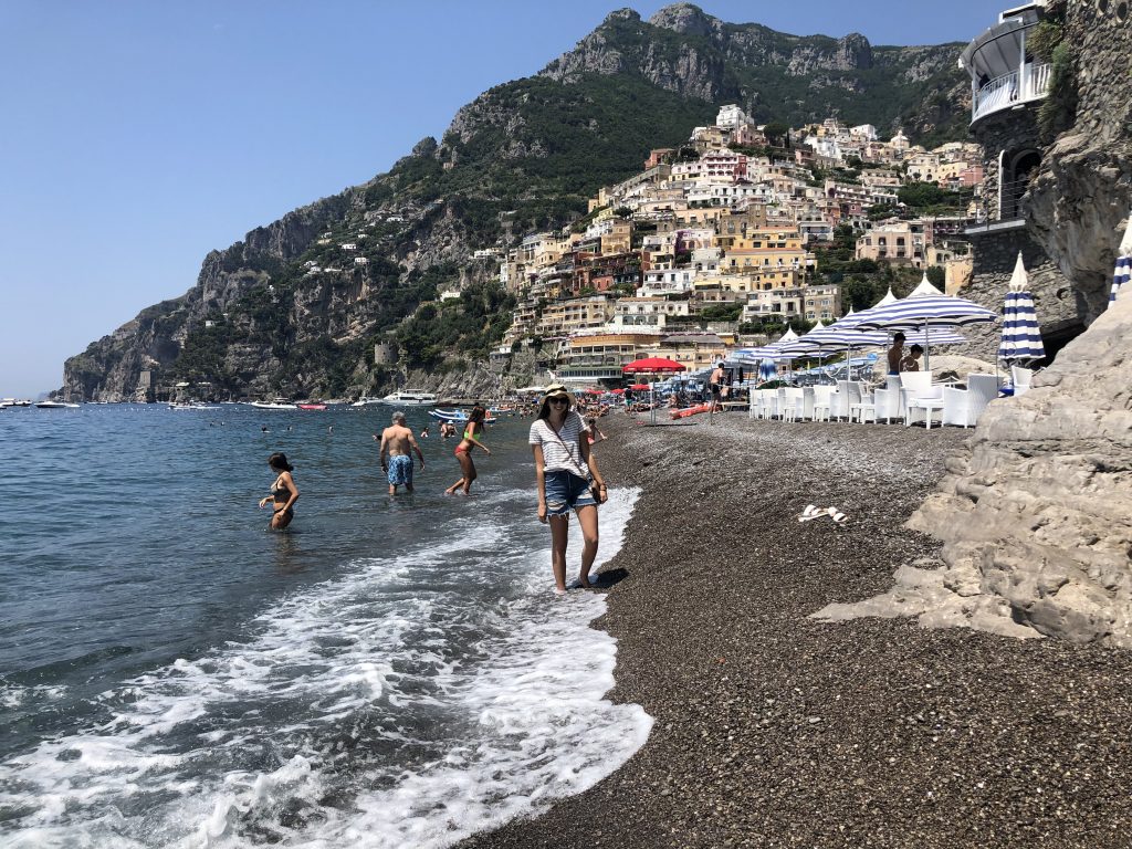 Our second stop was the famous village of Positano. Most buildings of Positano are built on cliffs overlooking the Mediterranean Sea. It was easy to see why this area is so popular as we walked up and down the steep streets and along the beach.