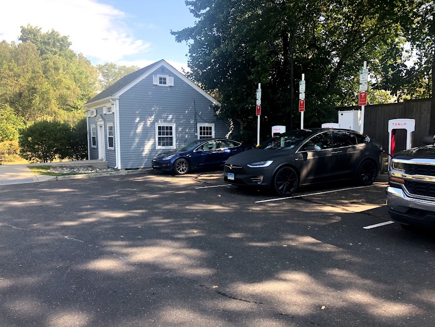 Our first charging stop of the day was in Greenwich, Connecticut in a service plaza just off Highway 15. Many of the Tesla Supercharging locations we stopped at throughout New England were in service plazas or rest areas immediately off the highway. This made it really convenient to make quick charging stops while we picked up food or took bathroom breaks.