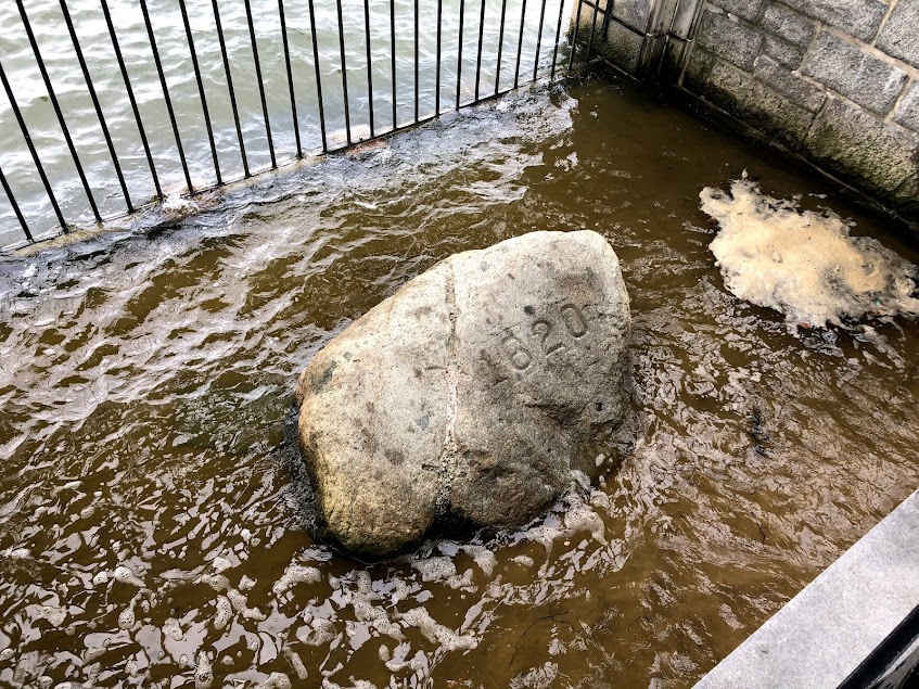 As we continued north, we passed a sign for Plymouth Rock and decided to detour so we could see the site where the Pilgrims stepped off the Mayflower in 1620. We both were underwhelmed once we arrived. In my head I had envisioned a something akin to a boulder, but instead it was a small rock enclosed in a portico. (Note: According to the web, this “small rock” weighs approximately 10 tons.) There are some other historical monuments in the area in addition to some restaurants and harbor.