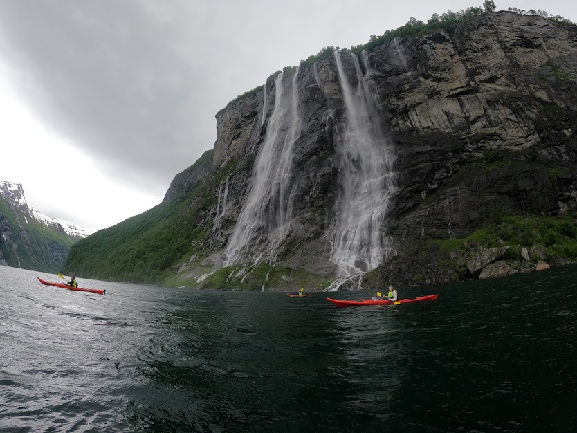 It took us a little over an hour to paddle the The Seven Sisters Waterfall. After taking some photos with the Seven Sisters we crossed the fjord to see The Suitor Waterfall before starting our return paddle back. We were all a little tired by this point and it began to drizzle cold rain on us, so we did our best to paddle quickly and get off the water before it started raining any harder.