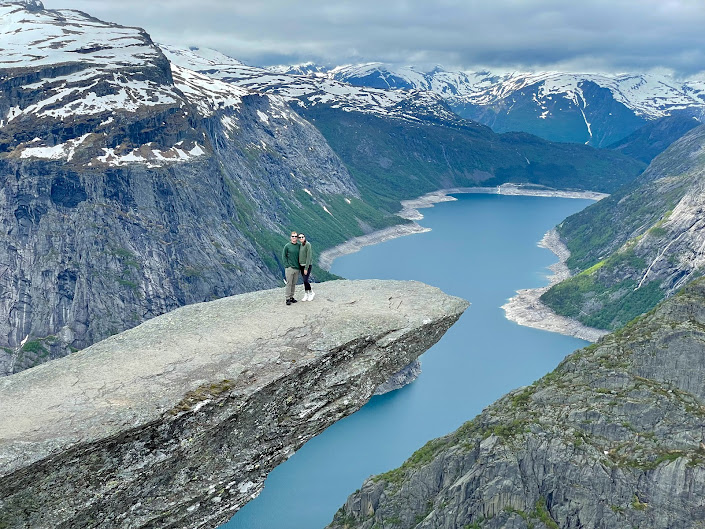 We started our day with a quick breakfast at the AirBnB and then headed towards the Trolltunga trailhead. Trolltunga is a famous rock formation in Norway located 2296 feet above Ringedalsvatnet lake. The out-and-back hike is 15.8 miles long and has 4,000 feet of elevation gain.